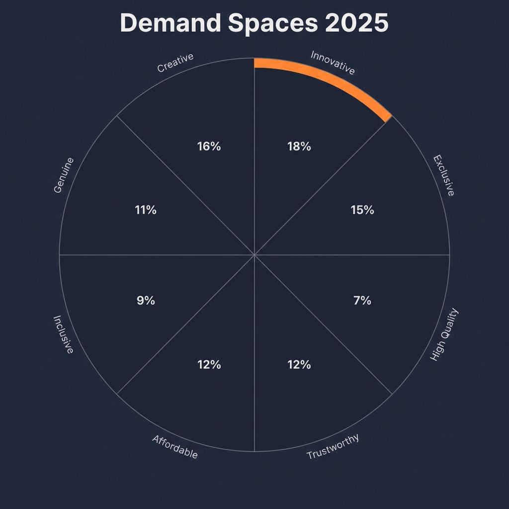 The 2025 Brand Map proves that current brand positioning is lagging behind consumer demand. Key Takeaway: To escape the "Price War" in saturated segments, brands must inject Creative or Innovative drivers into their GTM strategy to capture the massive 34% of the market that is currently underserved.